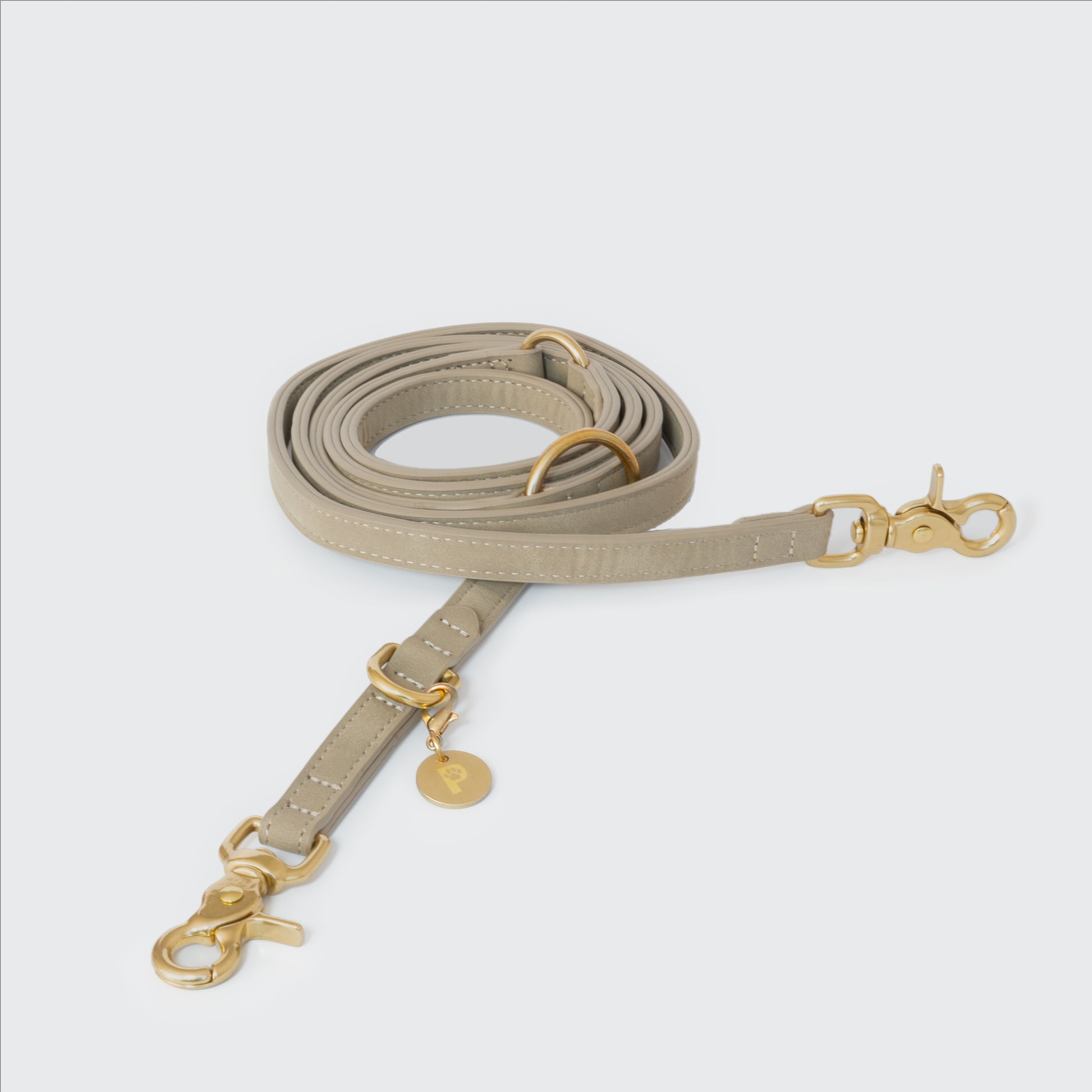 Mit 250 cm Länge und zwei robusten Karabinern kannst du zwei Hunde gleichzeitig führen oder sie freihändig als Crossbody-Leine tragen – für entspannte Spaziergänge mit Stil.